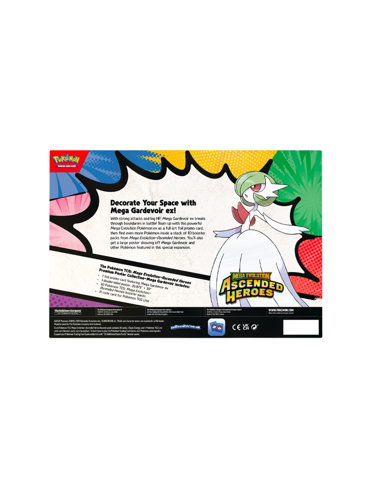 Inspirada en la expansión Ascended Heroes, esta colección destaca a Gardevoir en su forma Mega ex, uno de los Pokémon más populares y elegantes del juego.
